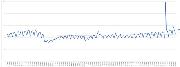 This is an “anxiety” index across the US by day across 2020. Note the spike related to the US election in Nov 2020. Analysis is based on google search trends.